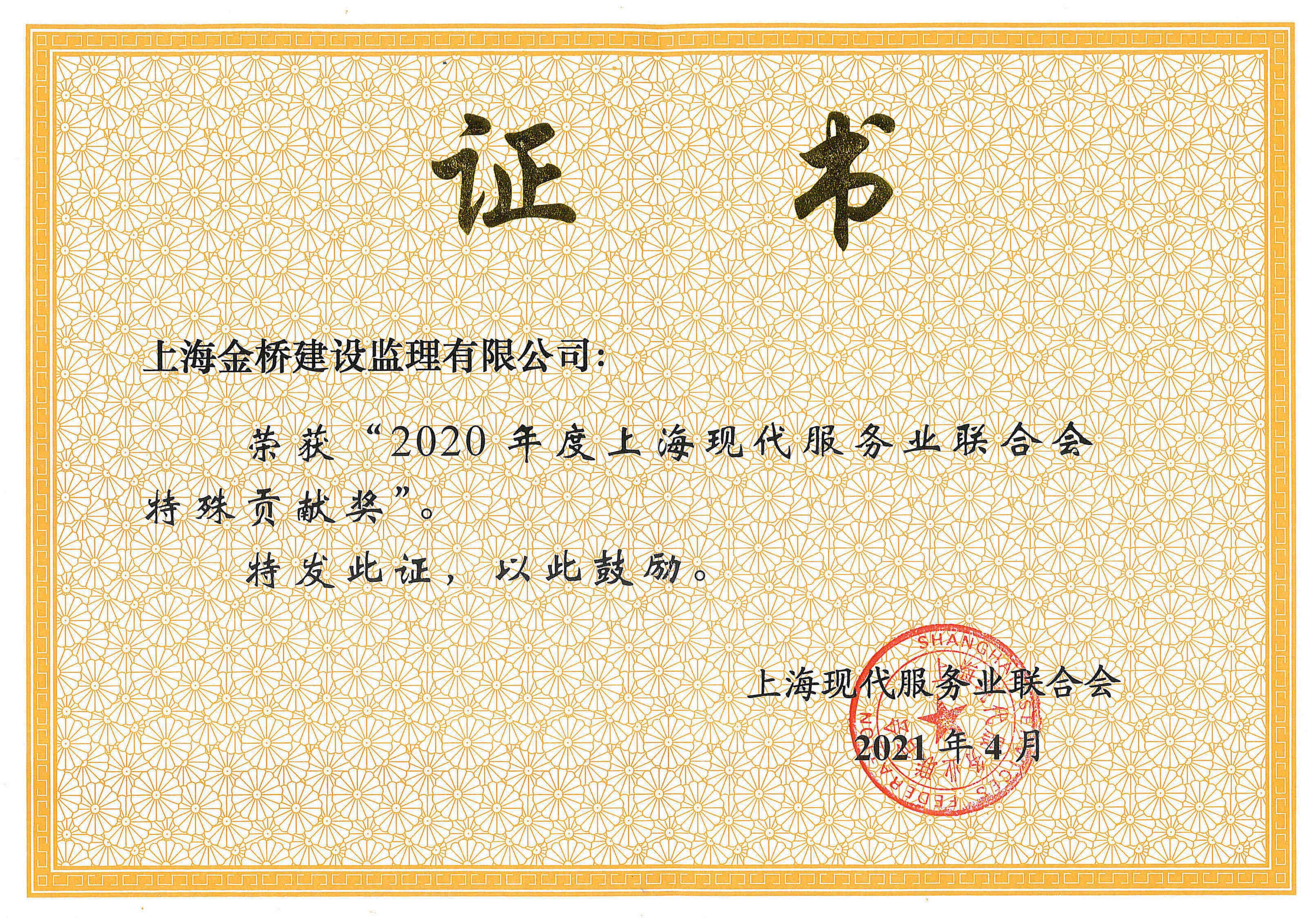 2020年度乐动注册现代服务业联合会特殊贡献奖