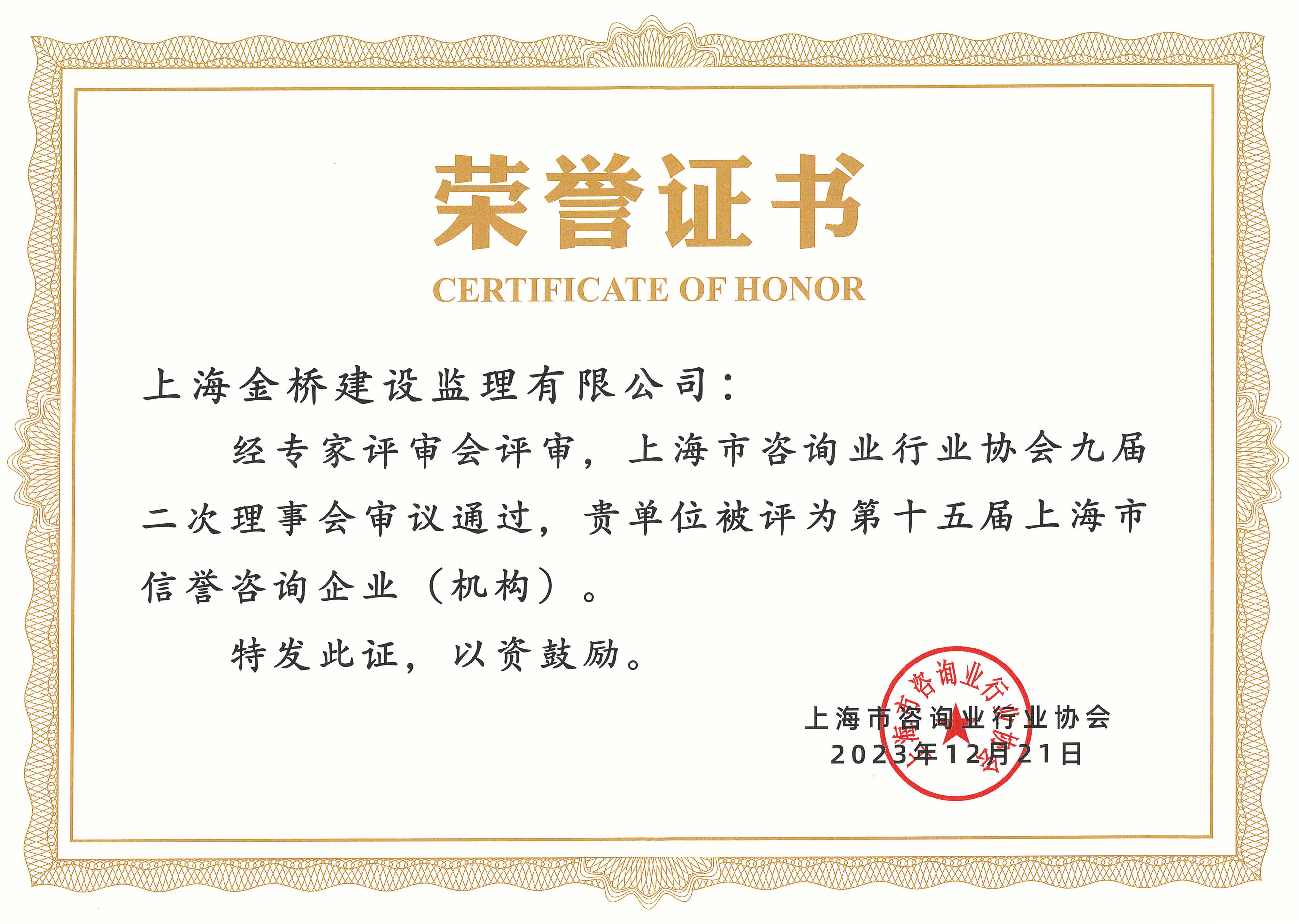 中国工程监理AAA信用评价证书(2022-2023)