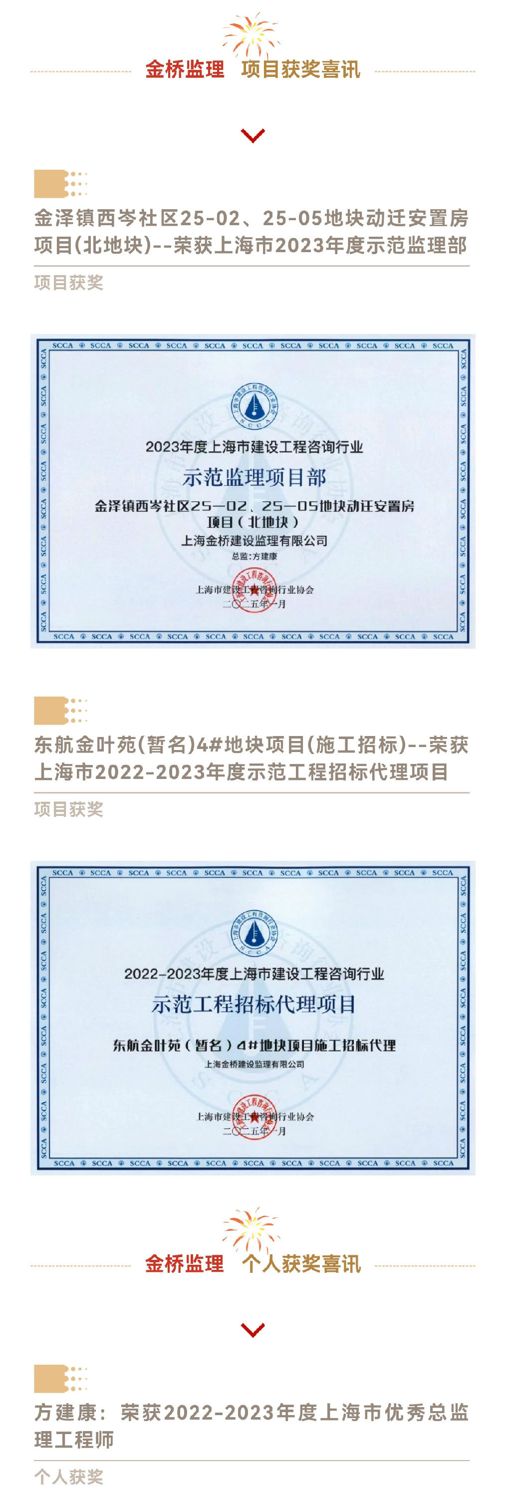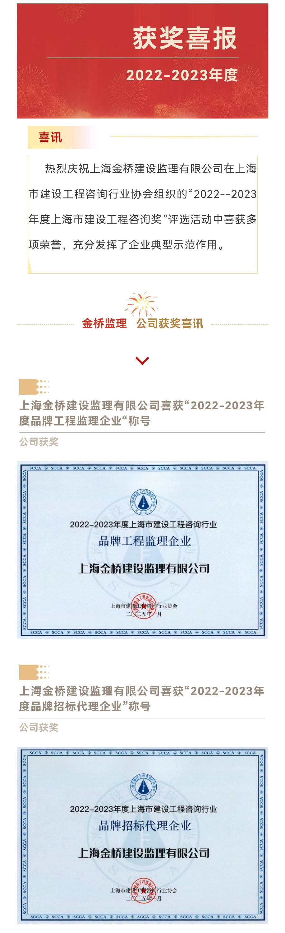 喜报 | 乐动注册金桥监理荣获“2022-2023年度乐动注册市建设工程咨询行业选树活动”多项荣誉